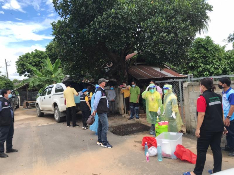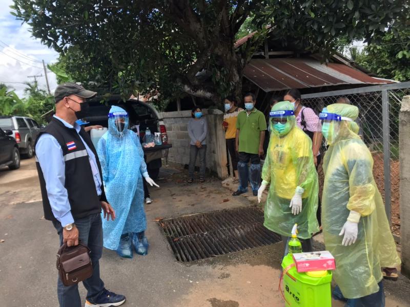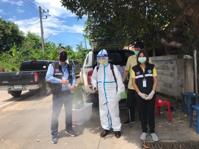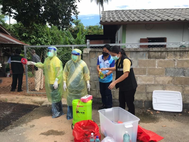 กิจกรรมทำความสะอาดสิ่งแวดล้อมบริเวณบ้านผู้ติดเชื้อโควิด บ้านม่วงใหม่ หมู่ 3