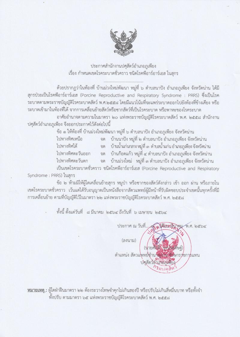 รายละเอียด : วันที่ 16 มีนาคม 2564 เวลา 13.00-15.00 น. นายกองค์การบริหารส่วนตำบลนาปัง เป็นประธานประชุมคณะกรรมการตรวจสอบข้อเท็จจริงกรณีการเกิดโรคระบาดในสุกรตำบลนาปัง ได้แก่ ปลัด อบต.นาปัง หัวหน้าสำนักปลัด ปศุสัตว์อำเภอภูเพียง นักวิชาการสาธารณสุข เจ้าพนักงานป้องกัน ฯเพื่อตรวจสอบข้อเท็จจริงและหาแนวทางการช่วยเหลือ กรณีเกิดโรคระบาดในสุกรและขอรับการช่วยเหลือเกษตรกรที่ได้รับผลกระทบจากโรค ด้วยองค์การบริการส่วนตำบลนาปังได้รับแจ้งจากผู้ใหญ่บ้าน ม.4 ,ม.6 มีสุกรตายด้วยโรคระบาดในสุกร