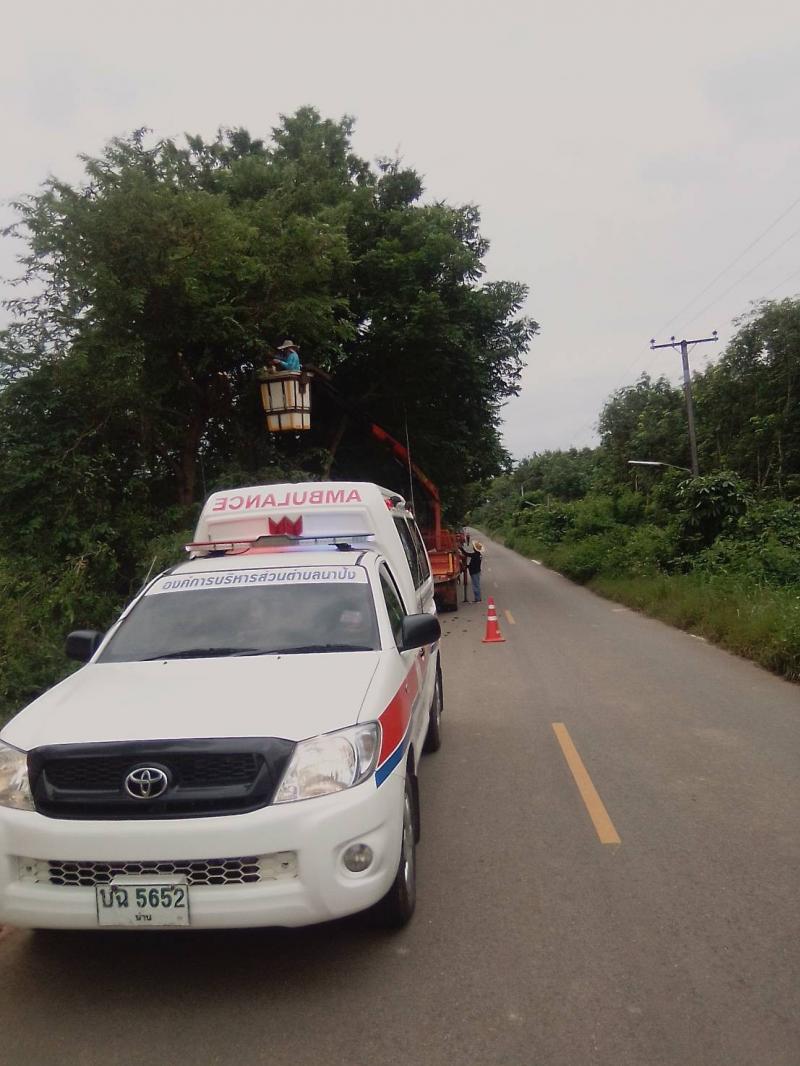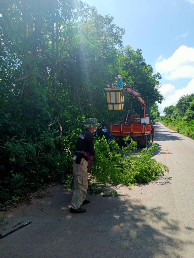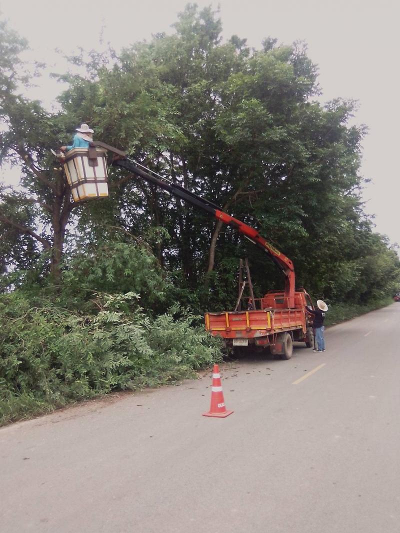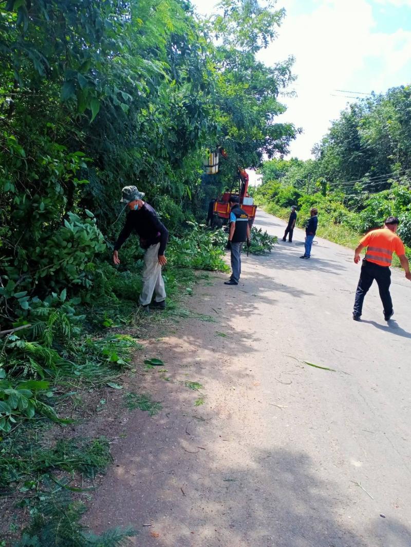 กิจกรรมพัฒนาถนนสายบ้านม่วงใหม่พัฒนา - บ้านก้อดแก้ว ต.นาปัง ตัดกิ่งไม้ที่บดบังการมองเห็นถนน และ กิ่งก้านยื่นเข้าไปในถนน