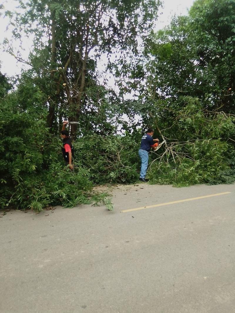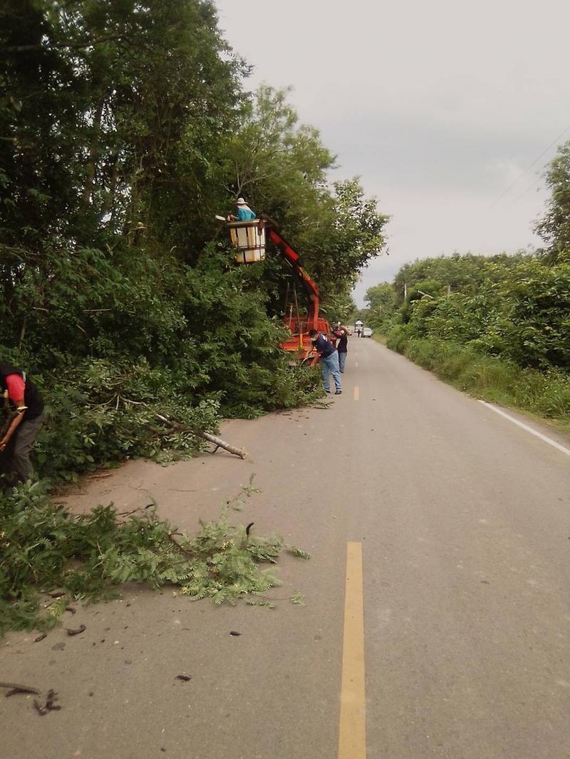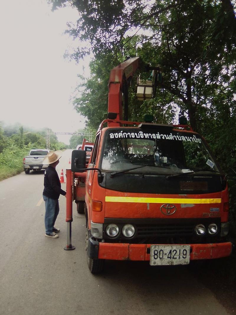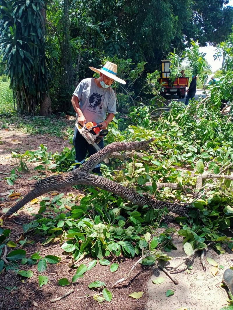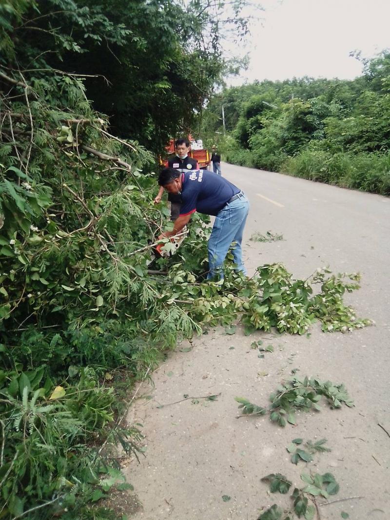 กิจกรรมพัฒนาถนนสายบ้านม่วงใหม่พัฒนา - บ้านก้อดแก้ว ต.นาปัง ตัดกิ่งไม้ที่บดบังการมองเห็นถนน และ กิ่งก้านยื่นเข้าไปในถนน