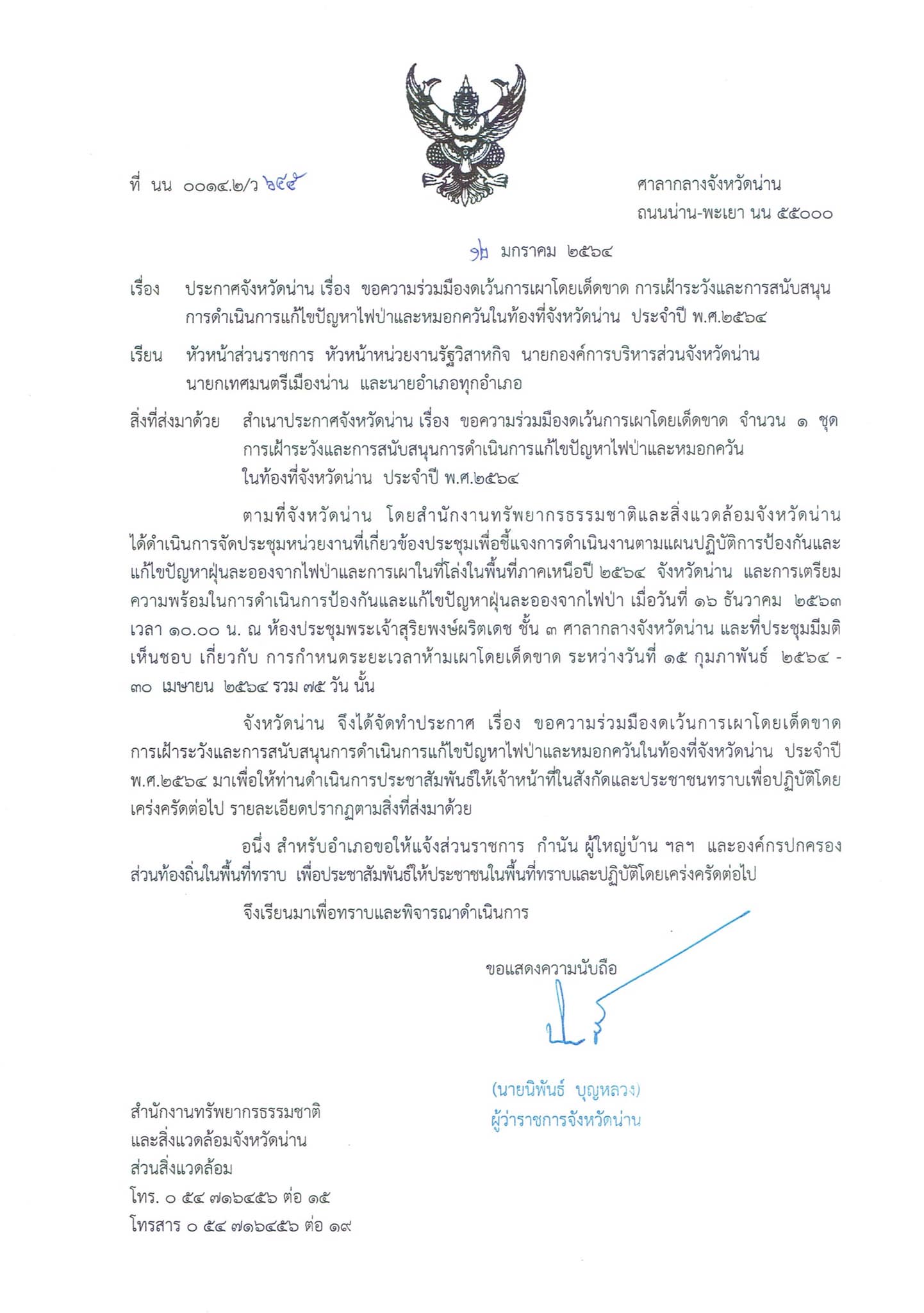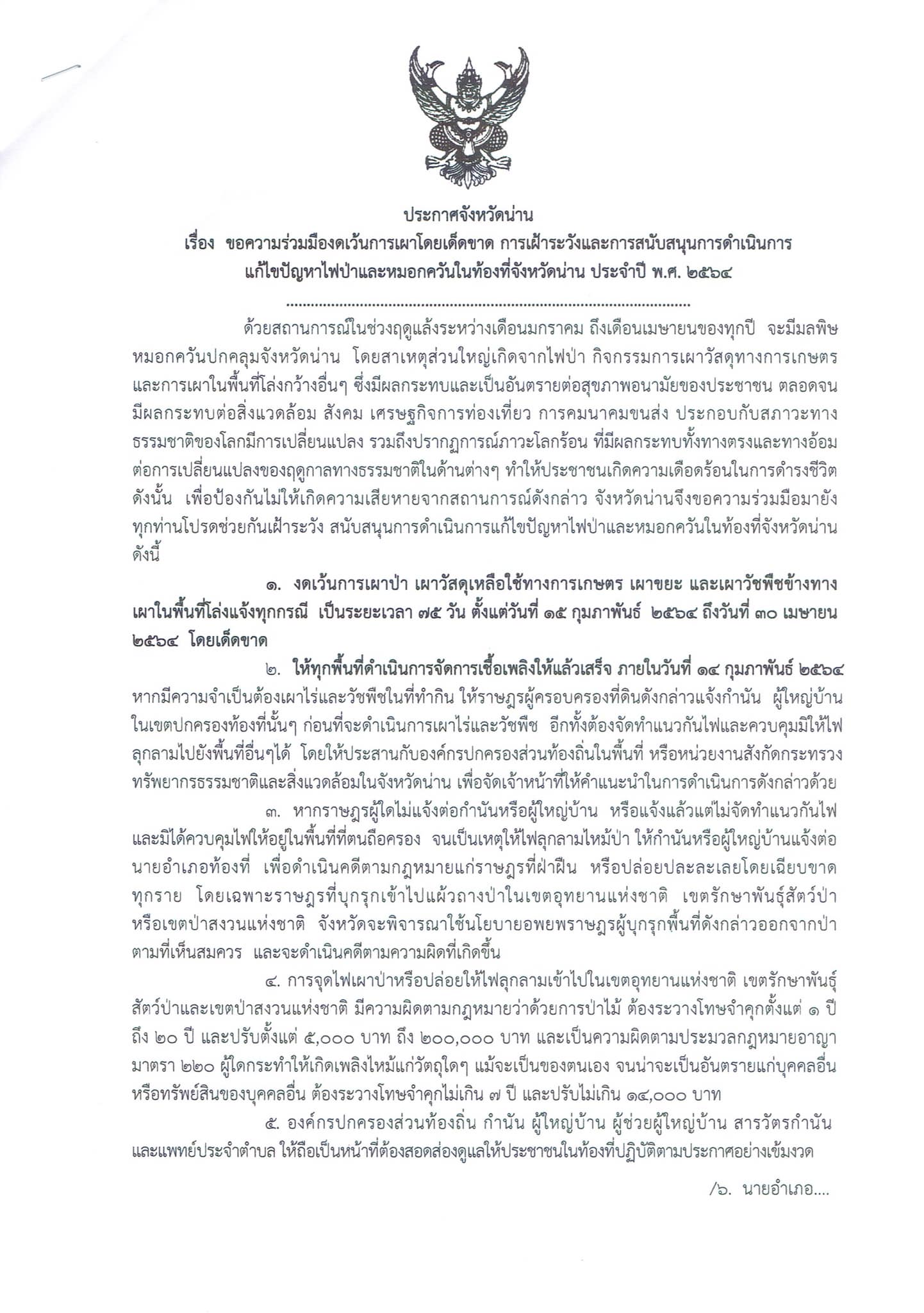 ชื่อเรื่อง : ประชาสัมพันธ์ งดเว้นการเผาในพื้นที่ ตามประกาศจังหวัดน่าน