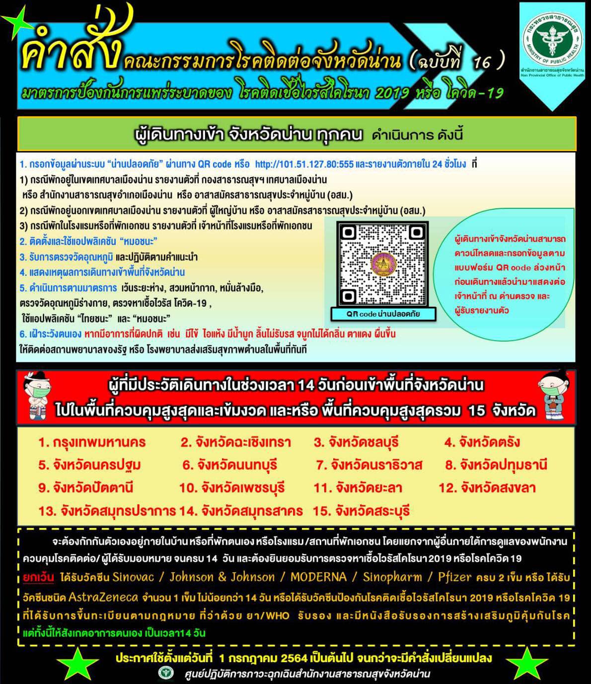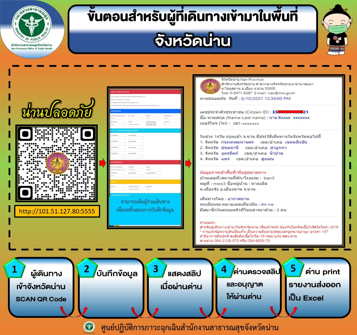 องค์การบริหารส่วนตำบลนาปัง ขอประชาสัมพันธ์ ข้อปฏิบัติและขั้นตอนสำหรับผู้เดินทางเข้าจังหวัดน่านทั้งทางบกและทางอากาศยาน เพื่อเป็นการป้องกันการระบาดโรคโควิด-19