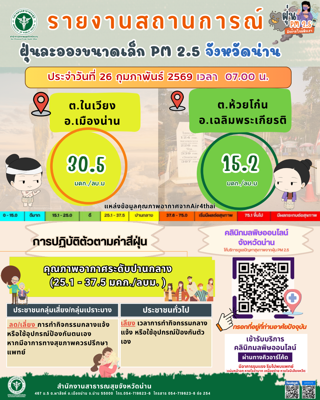 ????รายงานสถานการณ์ PM2.5 ประจำวันที่ 26 กุมภาพันธ์ 2569 เวลา 07.00น.????️