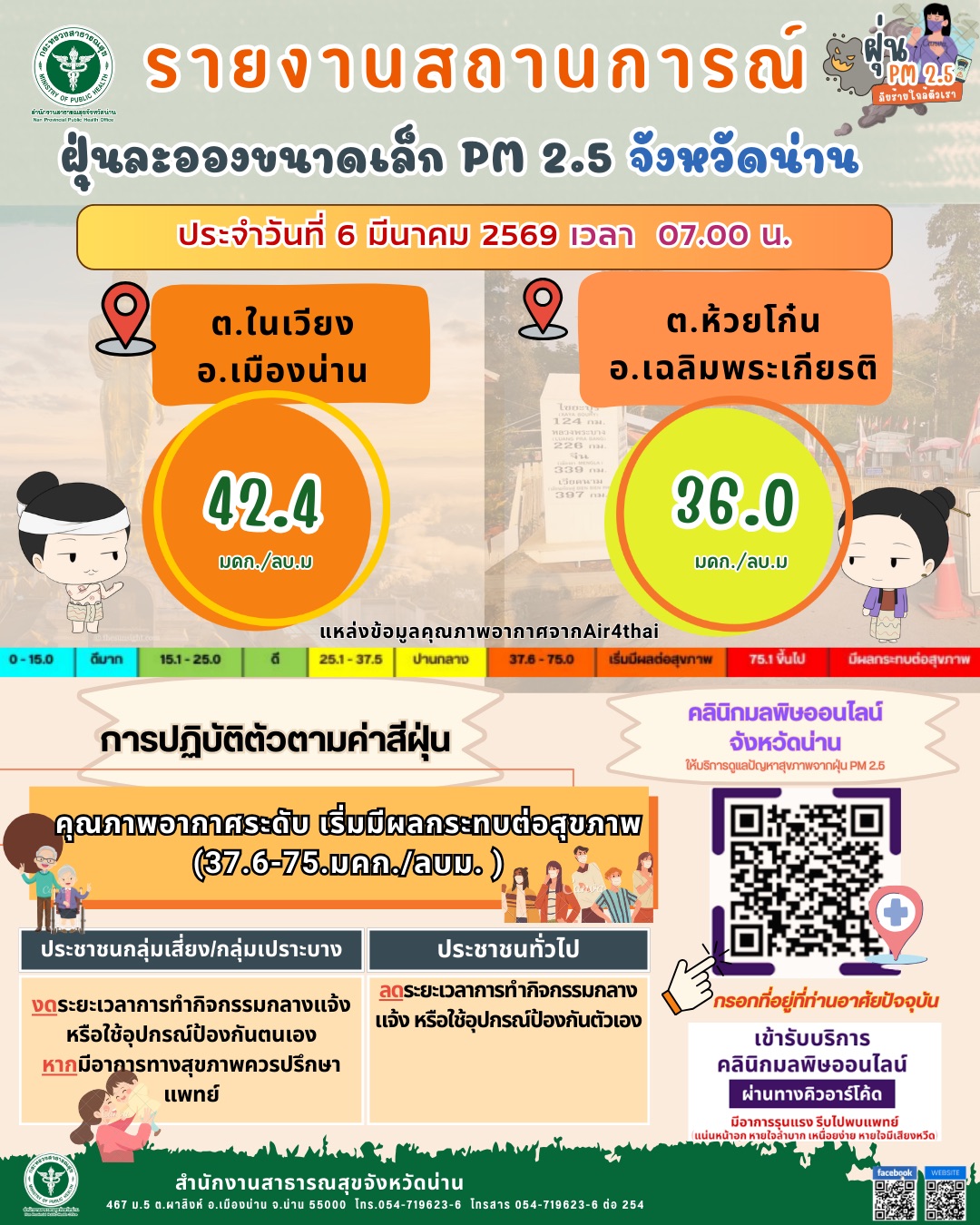 รายงานสถานการณ์ PM2.5 ประจำวันที่ 6 มีนาคม 2569 เวลา 07.00น.????️