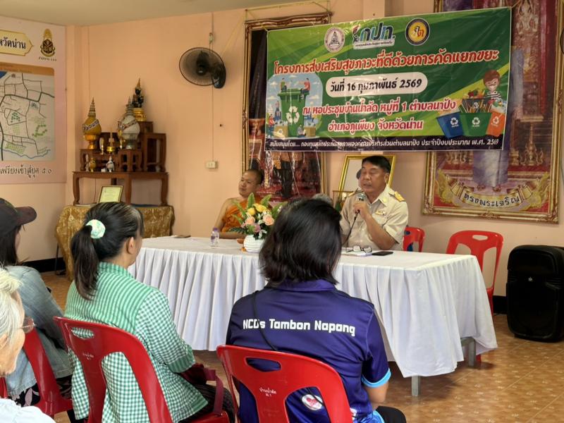 description 16 กุมภาพันธ์ 2569 ปลัด อบต. นาปัง เป็นประธานเปิดโครงการส่งเสริมสุขภาวะที่ดีด้วยการคัดแยกขยะ ณ หอประชุมบ้านน้ำลัด ม.1 สนับสนุนงบประมาณโดย กองทุนหลักประกันสุขภาพองค์การบริหารส่วนตำบลนาปัง ปีงบประมาณ 2569 person admin